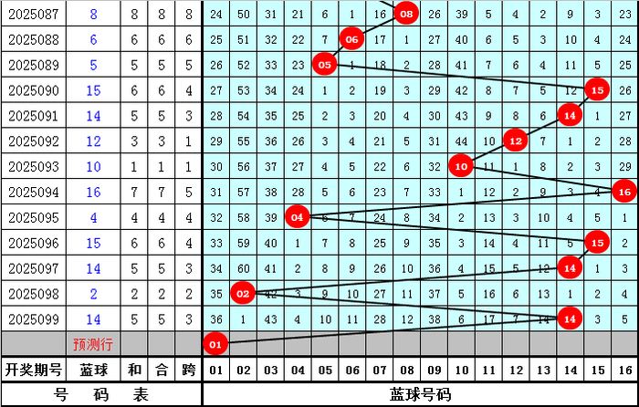蓝球分析:第2025099期开出蓝球14,最近10期蓝球号码遗漏期数分别为:5期、12期、8期、44期、29期、28期、5期、5期、60期、1期,第2025100期蓝球注意01-10段出号,重点关注1路蓝球。第2025090期参考蓝球:01。
