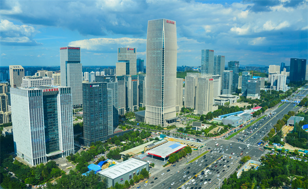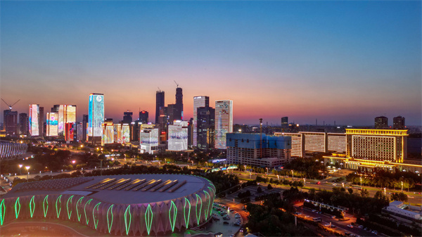 赛道继续沿经十路到CBD中央商务区,高楼林立的CBD与马拉松跑者的身影构成动态画卷,这里是中国最长的城市主干道之一。